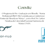 Convite banca de Defesa de Dissertação O Curso de Pós-Graduação em Filosofia- Mestrado Profissional convida para a Defesa Pública de Dissertação do mestrando JOÃO BATISTA DE SOUZA MAIA, que acontecerá no dia 29 de setembro de 2025 (segunda feira).Local: Laboratório Informatizado de Filosofia, Unidade 13. Horário: 14h Banca Examinadora: Dra. Cristina de Souza Agostini – Orientadora- […]